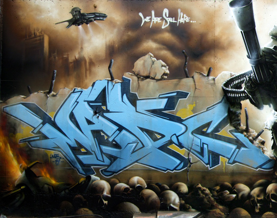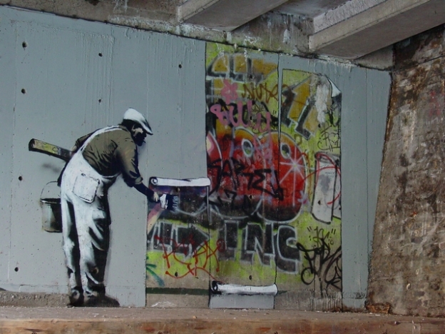 CORNBREAD, PHILADELPHIATAKI 183, NEW YORKSEEN, NYCSEEN, NYCSEEN, NYCBLADE, NYCBLADE, NYCCAP, NYCLADY PINKDONDI, NYCJean-Michel BasquiatKeith HaringKeith HaringBLEK LE RAT, PARISBLEK LE RAT, PARIS3D, BRISTOLGOLDIE, WOLVERHAMPTONCAZBEE, LONDONMODE 2 TCA, LONDON 1987Scam-Brim-Drone-Bando-Mode2MODE 2 TCA, LONDONTHE ARTFUL DODGER, ADVERTINKIE(BRISTOL), LIVERPOOLBANKSY, LIVERPOOLBANKSY, LONDONTwo men are sitting in front of a famous graffiti of British street artist Banksy, painted on a wall of a gas station in the West Bank city of Bethlehem on December 16, 2015.King-Robbo, LONDON